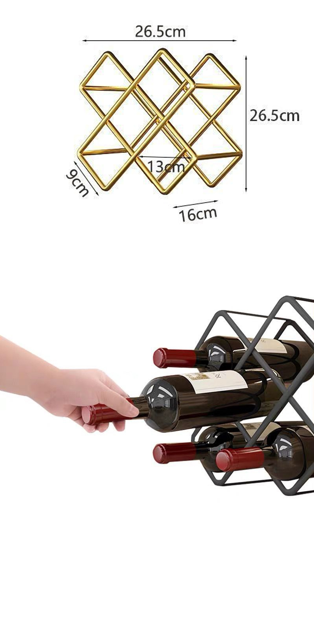 材質:碳鋼尺寸:高度26.5cm,寬度26.5cm紅酒收納,5瓶紅酒,一架搞定小巧實用,不占空間,妝點生活收放方便,瓶口朝外,隨手可取開放式設計,輕鬆找到您需要的酒紅酒臥放使木塞經酒浸泡,預防酒過早氧化非Zwieselglas 原廠