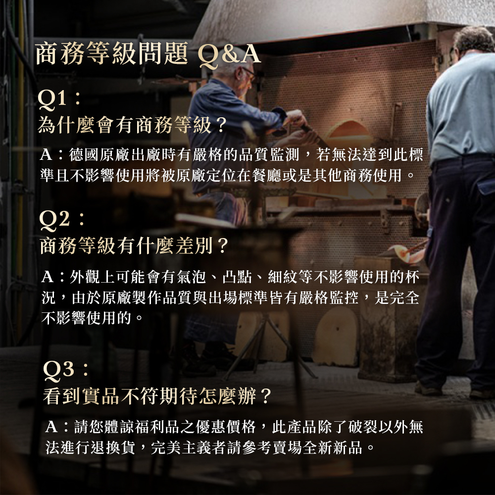 外觀上可能會有氣泡、凸點、細紋、杯底輕微不平 等不影響使用的杯況,由於原廠製作品質與出場標準皆有嚴格監控,是完全不影響使用的。