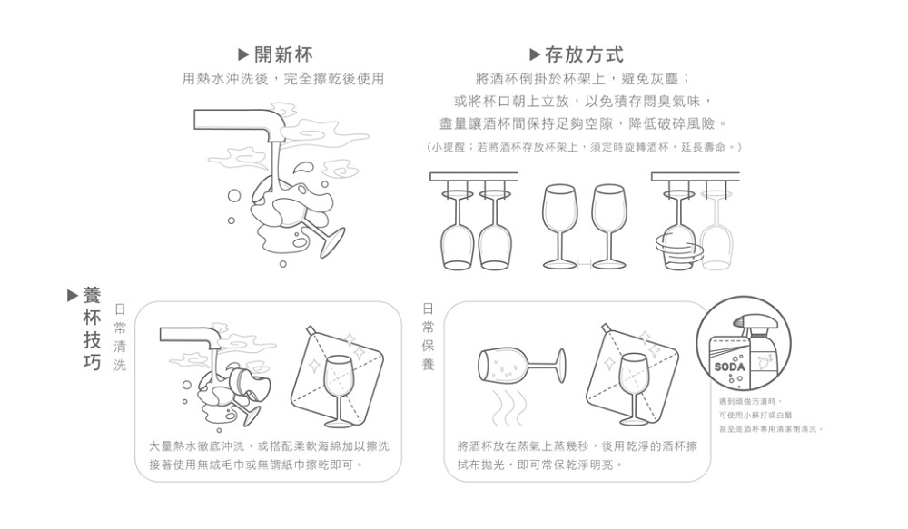 酒杯就像味蕾一樣,會影響酒的香氣與口感,好酒更需要空間與空氣揉合以散發迷人韻味。